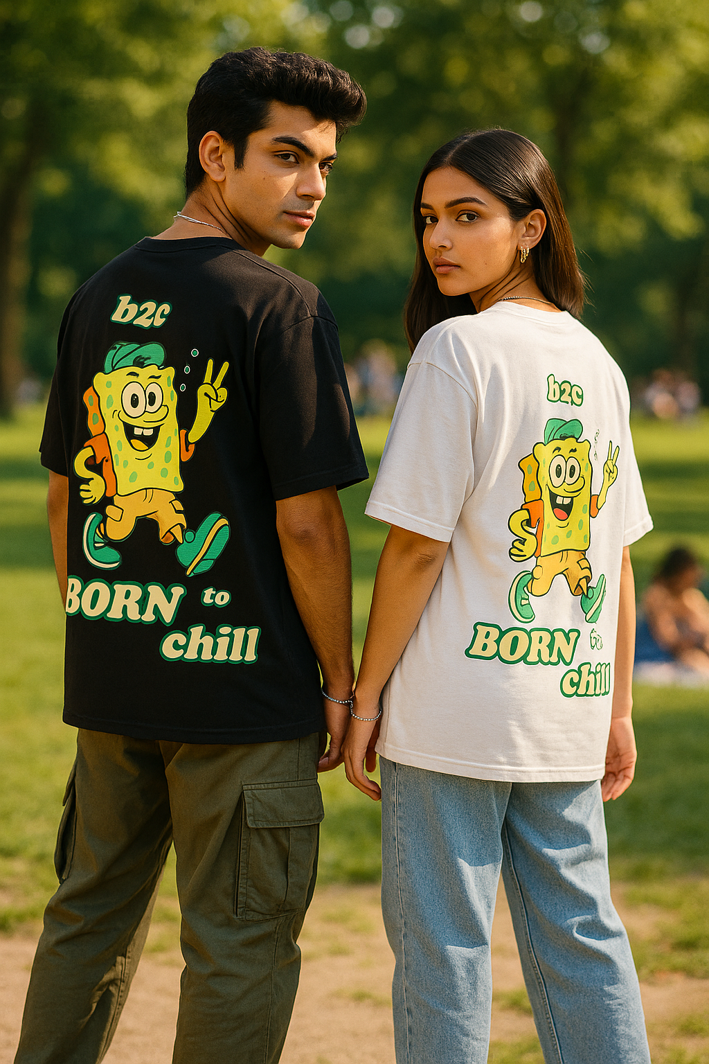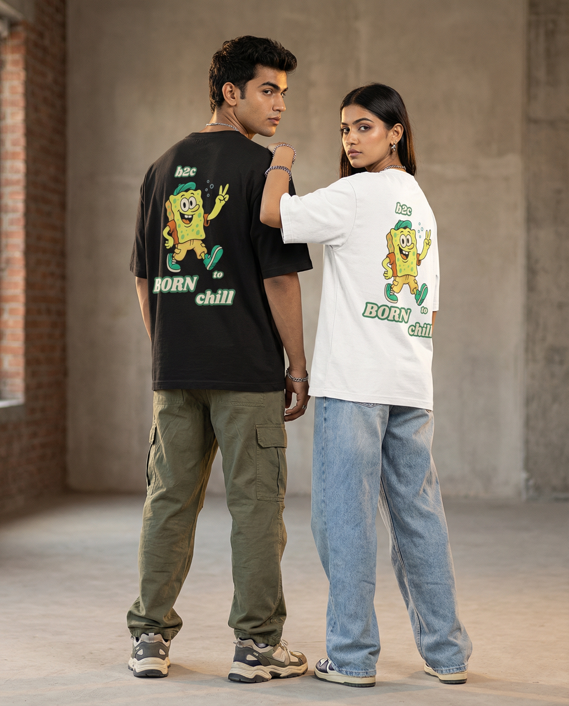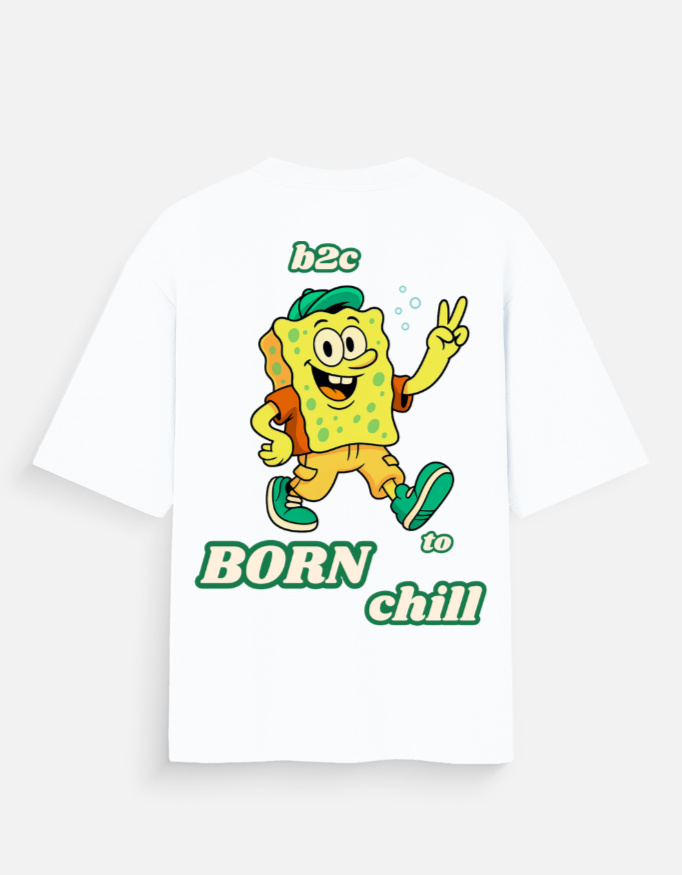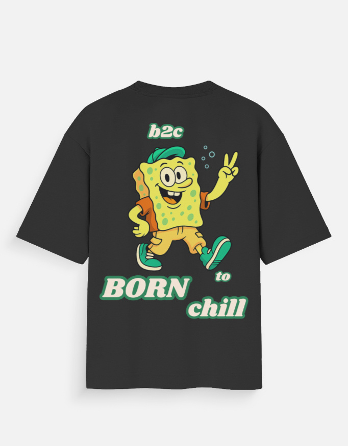 The B2C (Born To Chill) oversized T-shirt delivers a bold streetwear statement with a vibrant cartoon back print that captures pure chill energy.