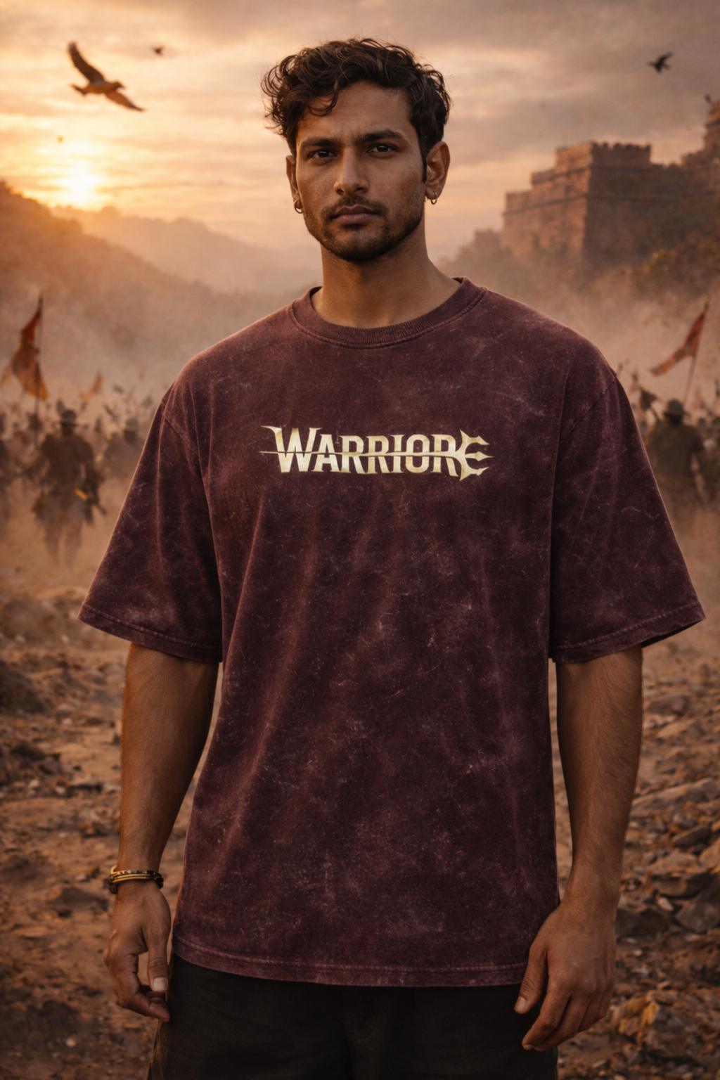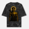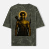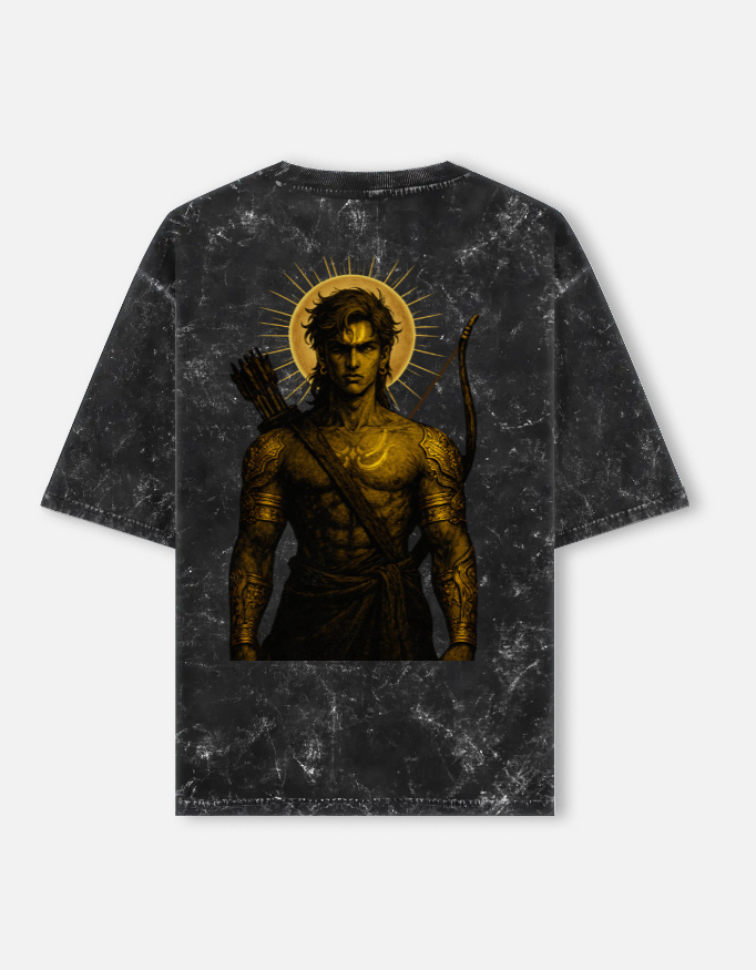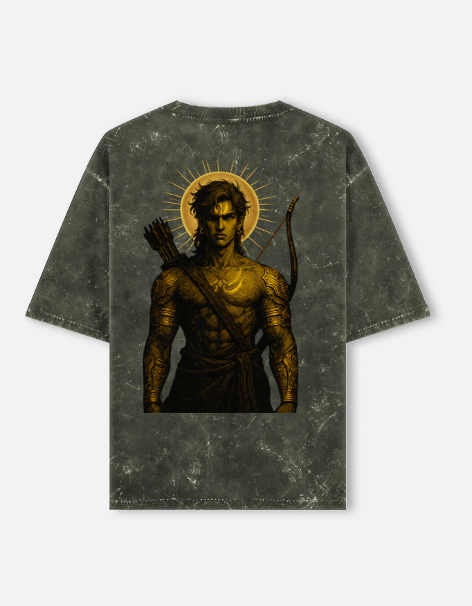 Crafted on a premium acid-wash oversized tee, this piece blends ancient power with contemporary streetwear. The back artwork features a warrior form with divine restraint — calm, intense, unbreakable. Finished with a subtle WARRIOR insignia on the front, the design speaks without shouting.